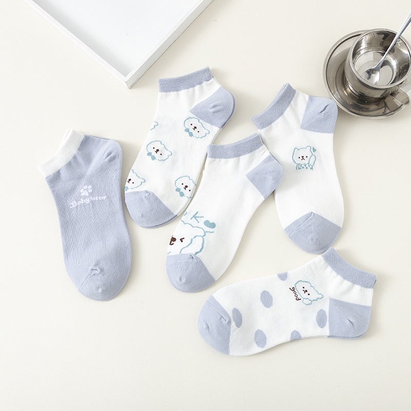 Kaos Kaki Wanita Motif Beruang Biru Muda Pendek Semata Kaki || Fashion Korea Wanita Dewasa Barang Unik Murah Lucu