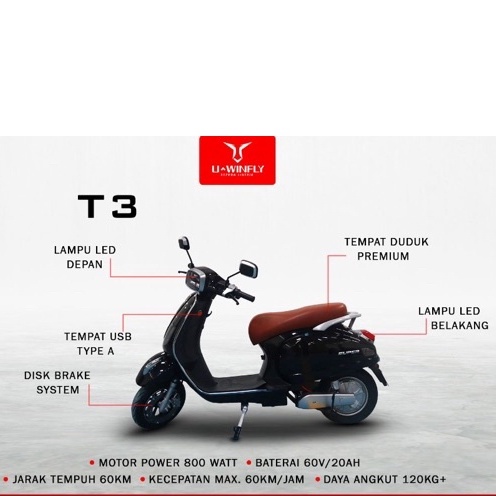 TERBARU Motor Listrik Uwinfly T3 Baterai 60V/20Ah Vespa