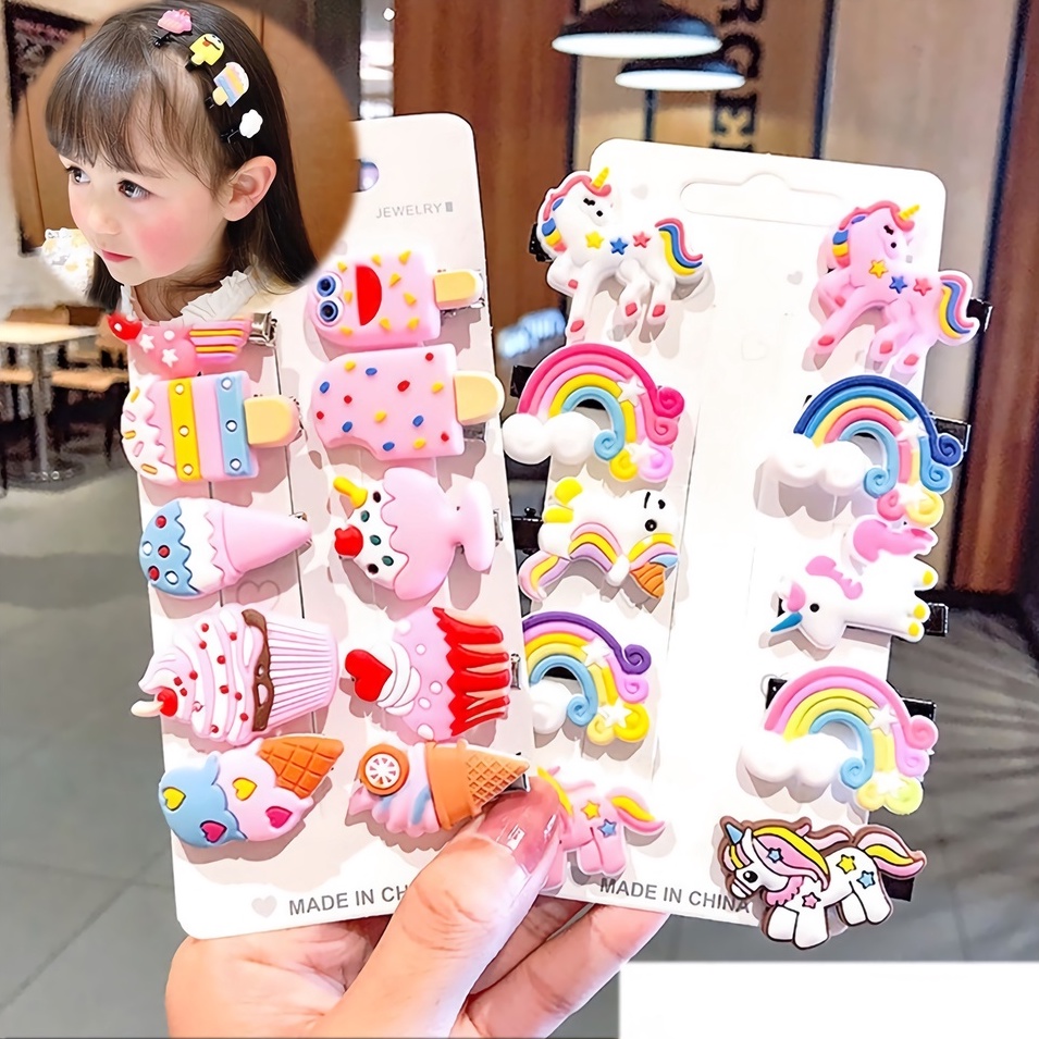 10pcs Jepit Rambut Anak Perempuan Lucu 10 IN 1 Jepitan Rambut Fashion Karakter Jepitan Hair Pin Gaya Korea Kids Unicorn Ice Cream Supplier Grosir Barang Unik Murah Lucu Import Viral