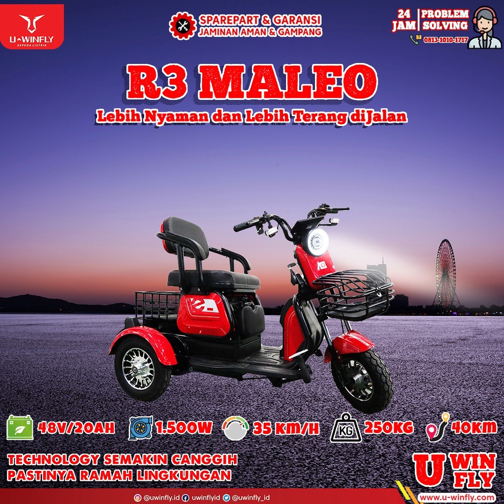 Alasan kenapa harus beli (PROMO) Sepeda Motor Roda 3 Uwinfly Maleo 48V/20Ah Power 1.500W / ROMEO 48V/12AH Power 600W sekarang
