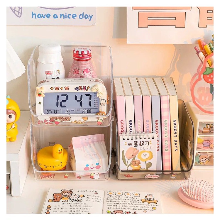 Kekurangan - Kekurangan membeli [littlecrab] Rak Putih Transparan Akrilik Clear Rak Penyimpanan Barang Aesthetic Stationary Kit Room Decoration Tempat Simpan Barang Desk Organizer Lucu Unik di Toko ini